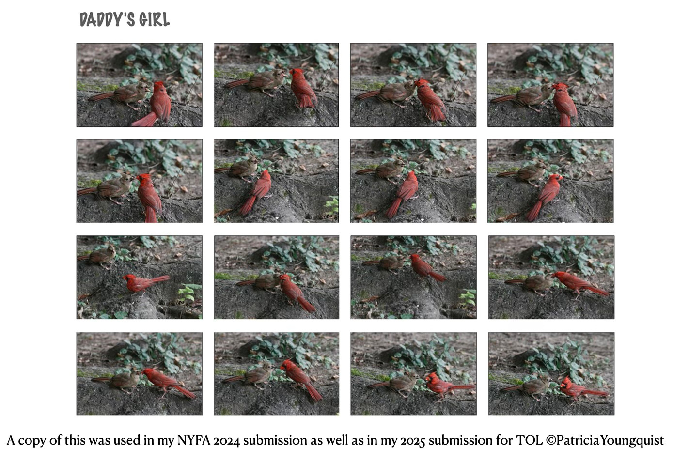 This fact is evidenced in the image atop this posting which features a play by play of a male Northern cardinal feeding his fledgling in NYC's Central Park.