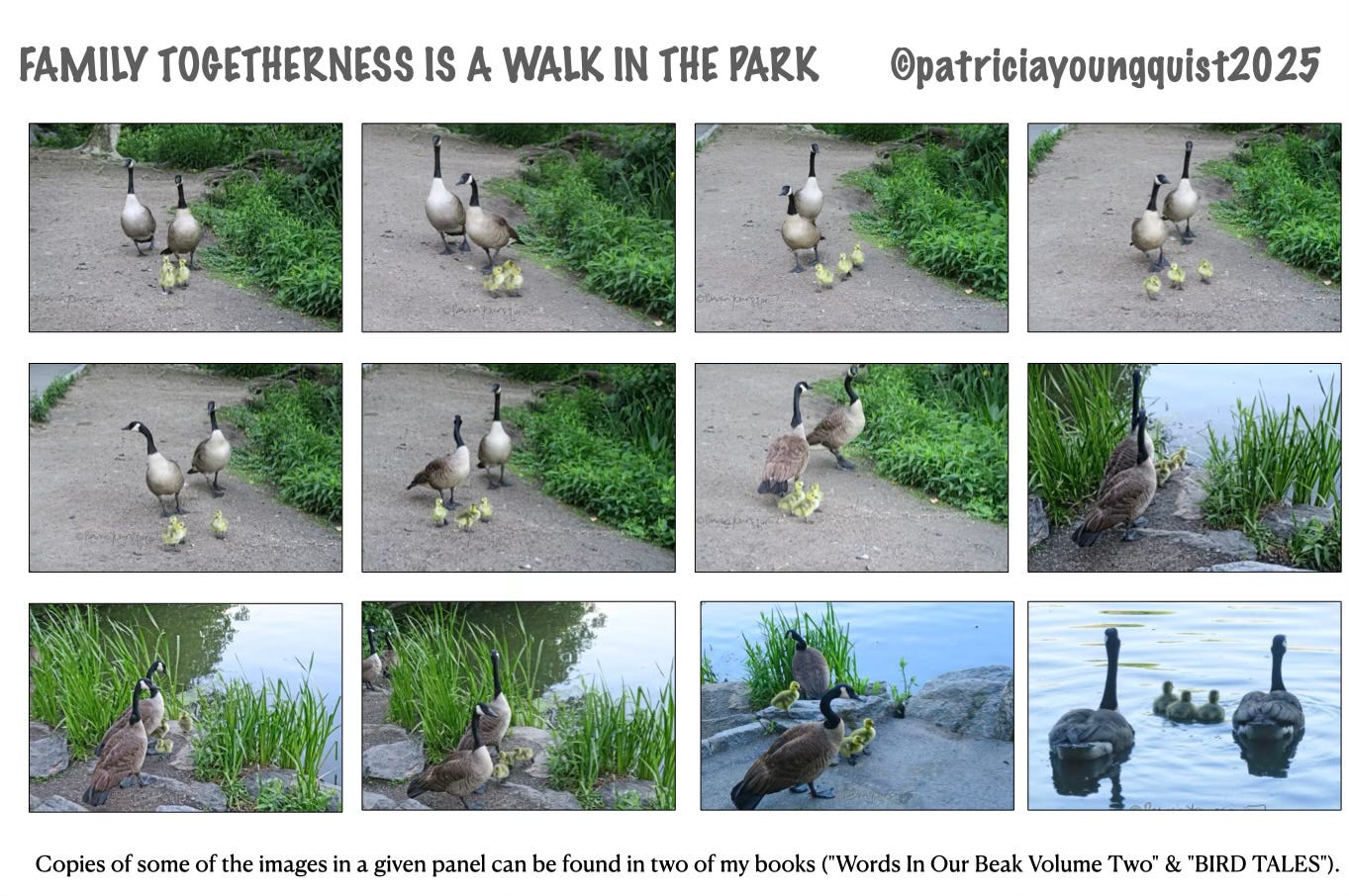 There is another bird type whose members make good fathers, and that's the variety known as Canadian geese. Ganders (male geese) play a crucial role in leading the family (the youngsters are called goslings) to food sources and safe locations, as illustrated in the image created by yours truly.